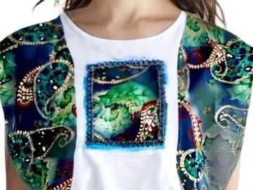 cotton t-shirt top with kaftan style sleeves made from cut off fabrics of a kimono collection by Zsa Zsa b.
